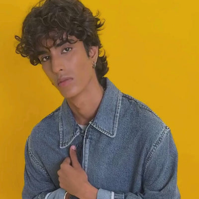 Acid wash jacket in light weight denim with a spread collar and a front zip closure.