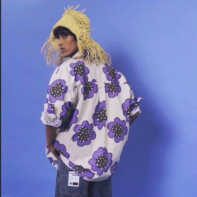 Oversized full sleeves shirt in printed cotton with a classic shirt collar, finished with a front button closure.